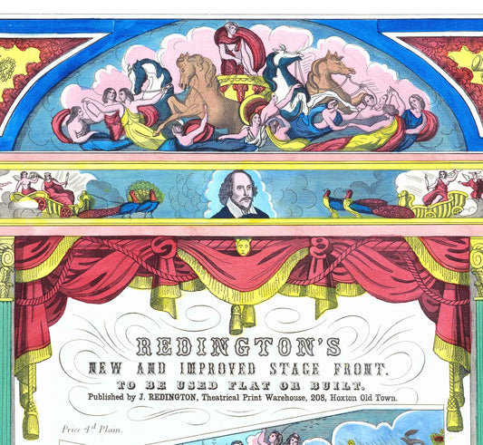 The others in the set include two of the magnificent stage fronts published in the 1850s by Mr Pollock’s father-in-law, John Redington, which can be mounted on card and used to frame a stage or picture, or simply enjoyed as they are. These sheets measure 700 x 420 mm.