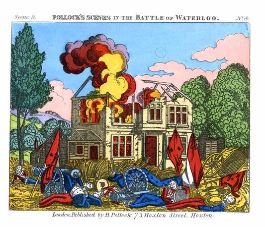 Three of the plays published by Benjamin Pollock make up part of the range – the familiar tale of Charles Dickens’s Oliver Twist, the miniature version of The Battle of Waterloo that was enacted with live horses on the London stage, and the delightful fantasy pantomime of Jack the Giant Killer, with some familiar scenes of 1840s London.
